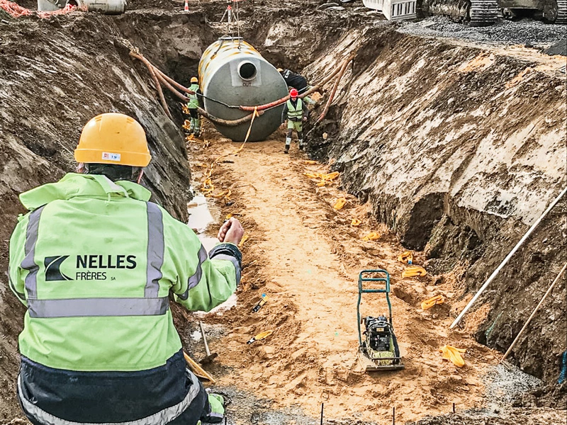 In het kader van de werken voor Alibaba op de luchthaven van Bierset is Nelles Frères verantwoordelijk voor de bodemsanering, de grondwerken, de ondergrondse waterafvoer, een deel van de nutsleidingen en de volledige afwerking (boordstenen, asfalt, beton, bestrating …). Ook de installatie van drie Oleopator-G-H’s behoorde tot het takenpakket. Dit zijn KWS-afscheiders met een grote capaciteit, die gefabriceerd worden door de firma ACO.