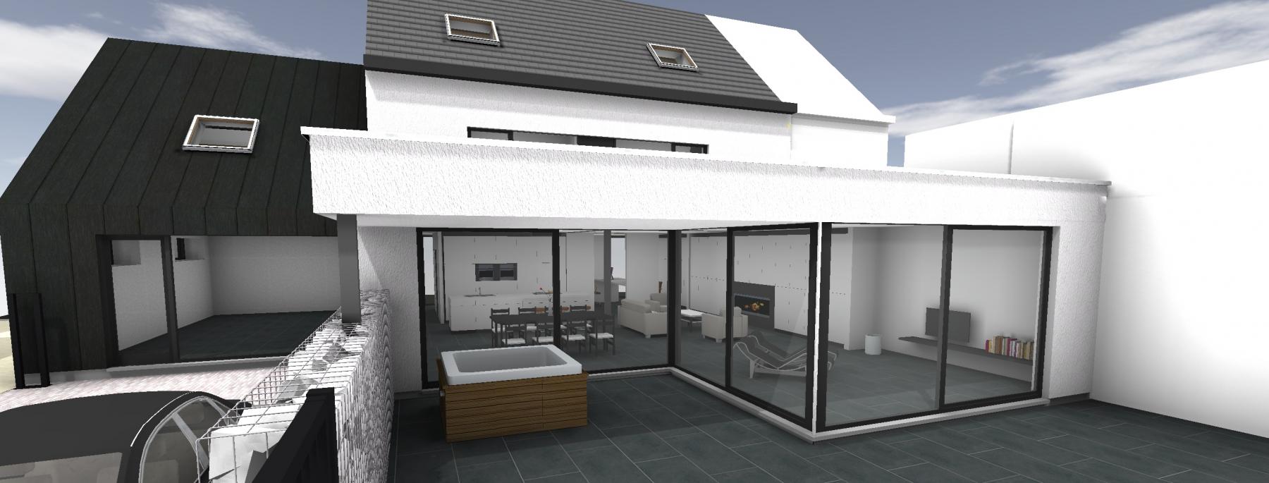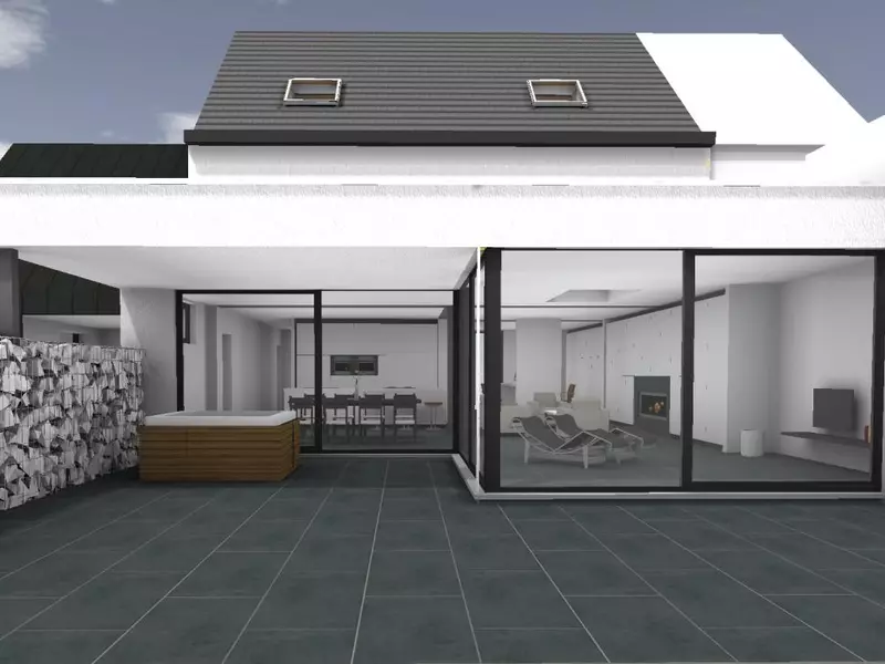 Deze oude woning werd volledig gestript en opnieuw ingedeeld. Oude houten vloeren vervangen door een betonnen structuur. Een nieuwe aanbouw werd voorzien achteraan.
