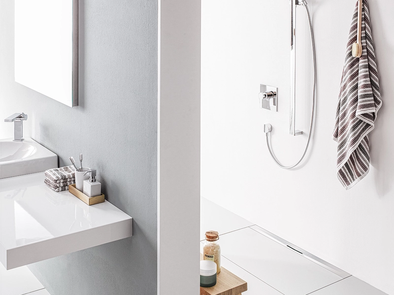 ACO Douche omvat niet enkel afvoersystemen voor de particuliere badkamer, maar ook voor elke sanitaire ruimte van de woning en in publieke gebouwen.